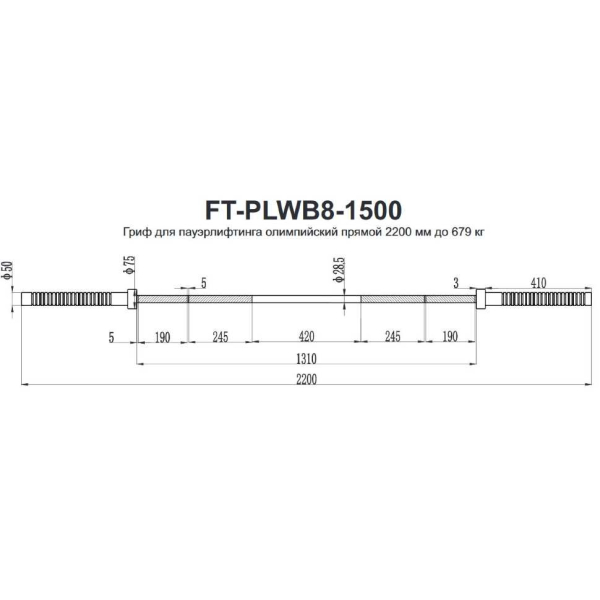 Гриф для пауэрлифтинга олимпийский OriginalFittoolsНажмите, чтобы увеличить |