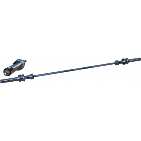 Описание: Изготовлен из высокопрочной легированной стали, покрытие - зеркальный хром, длина - 2200 мм, сложная втулка - 50 мм, замки со сложным стопором 2х2,5 кг.