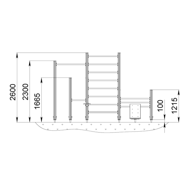 Описание: Спортивный комплекс Start Line Fitness № 2 (2 турника разной высоты, брусья, шведская стенка, скамья наклонная, 3 турника для отжимания)