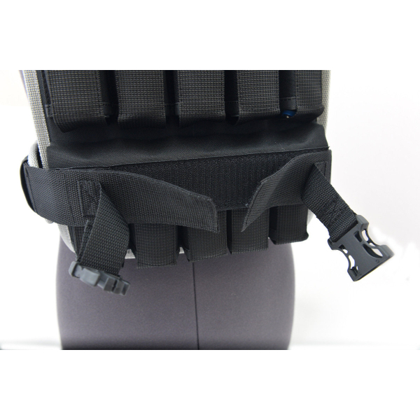 Жилет прекрасно фиксируется на фигуре спортсмена. Благодаря жестким регулируемым ремням, есть возможность самостоятельной регулировки веса, а также предусмотрено быстрое изменение объема конструкции. Вставки для утяжелителей распределены равномерно по всему утяжелительному жилету, вес каждого грузка равен 1 кг, на каждом из них изображен запоминающийся фирменный логотип. Грузы легко вынимаются благодаря специальным карманам, при движении их надежно фиксирует липучка, сам жилет относится к весовой категории до 20 кг. Большой плюс состоит в том, что жилет легко одевается и надежно фиксируется на теле, а снять его можно одним движением, при беге он не болтается, а становится как бы единым целым с телом спортсмена. Характеристики: