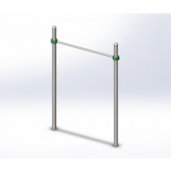 Описание: Снаряд состоит из двух высоких стоек и одной перекладины, закрепленной с помощью хомутов-соединителей , на высоте 2350 мм от основания покрытия площадки.Сверху модель покрыта стойкой к воздействию атмосферных воздействий краской.