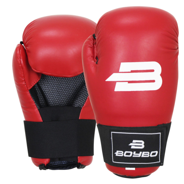 Образцом перчаток BoyBo являются перчатки стандарта GTF/ITFс открытой ладонью из износостойкой искусственной кожи с наполнителем из формованной пены высокой плотности, который эффективно гасит удары. Манжета на липучке надёжно фиксирует перчатки во время боя. Характеристики: