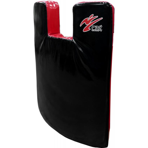 Регулируемая система креплений на тыльной стороне позволяет тренеру контролировать положение щита, а полукруглая форма и демпфирующий вкладыш толщиной 14 см. надежно защищает его от ударов руками и ногами.