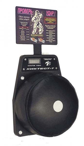 Описание: Прибор «КИКТЕСТ - 7» предназначен для установки в развлекательных, игровых и других подобных заведениях с целью развлечения путём определения силовой характеристики ударов. Силомер включает в себя жетоноприёмник, оснащённый замком с ключами и счётчик жетонов, оснащённый энергонезависимой памятью. При выемке из прибора отсека сбора жетонов, на табло «КИКТЕСТ – 7» отображается количество жетонов, проброшенных через прибор.