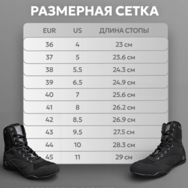 Профессиональная боксерская обувь GRAWA X-отличный выбор для регулярных тренировок и соревнований. Конструкция модели очень легкая, практически не ощущается на ноге. Современные прочные искусственные материалы в сочетании с компьютерным моделированием колодки позволяют лучше использовать ваш потенциал на тренировках. Преимущества: •Боковое усиление и исключительное сцепление с подошвой обеспечивают превосходную поддержку и контроль; •Плоская стелька обеспечивает дополнительную стабильность по всей обуви, соединяя вас с рингом; •Достаточно жесткая поддержка в носке и пятке дает более четкую фиксацию стопы для легкого передвижения в ринге; •Сетка позволяет ноге дышать во время самых интенсивных тренировок, при этом будучи невероятно прочной, увеличивает долговечность обуви; •Подошва не скользит, не оставляет следов. Идеально подойдет мужчине, женщине, ребёнку, как на тренировки так и на соревнования, для начинающих и профессионалов.