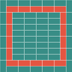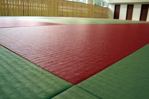 Татами тренировочное 12x12 м. с боевой зоной 10x10 м. Общая площадь 144м.², формат листов 1000х2000 мм. 72 листа: 18 красных, 54 зеленых.