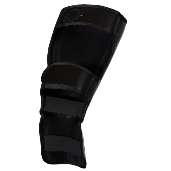 Фронтальная часть щитка усилена дополнительным слоем нетканого материала толщиной 6 мм. и общая толщина в районе косточки достигает 35 мм. Также икроножные мышцы защищают боковые накладки (накладка на стопе из этого же материла). Этот материал достаточно плотный, но в то же время мягкий, что позволяет хорошо защитить конечности спортсмена и не травмировать партнёра во время спарринга. Характеристики:
