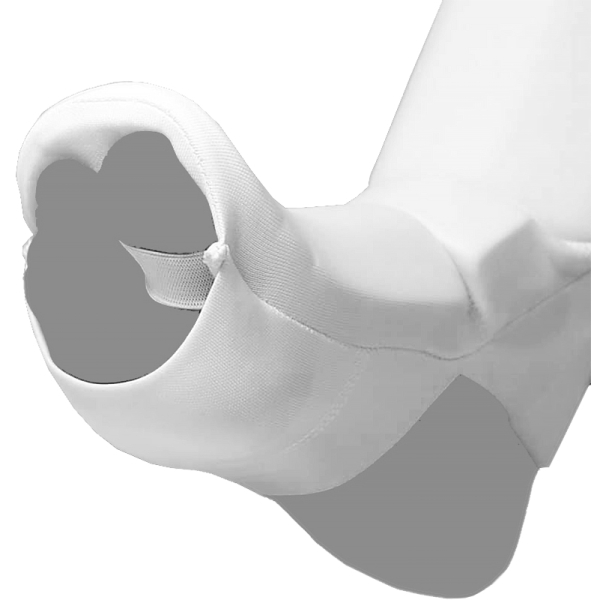 Щитки чулочной формы изготовлены из эластичного трикотажа, благодаря чему они плотно облегают ногу. Три секции защитных вкладышей толщиной 15 мм. надежно защищают ударные поверхности голени и подъёма ноги. Также щитки имеют дополнительную защиту ахиллова сухожилия.Сегментная конструкция щитка сохраняет хорошую подвижность голеностопного сустава. Щитки дополнительно фиксируются на большом пальце ноги петлёй из эластичной тесьмы.
