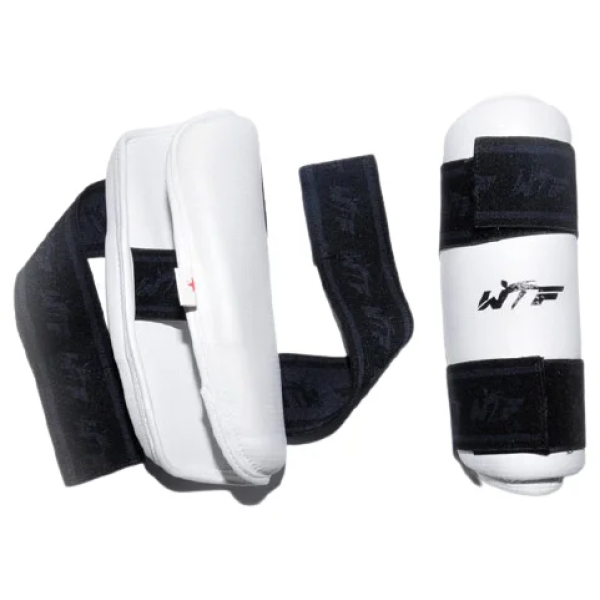 Щитки для предплечья во время занятий тхэквондо используются не только начинающими спортсменами, но и профессионалами. Анатомическая форма щитка повторяет форму и хорошо сидит на руке. Щиток должен располагаться на предплечье не мешая движению. На защитном щитке имеются эластичные ремешки на липучке обеспечивающие удобную фиксацию на руке. Сам щиток изготовлен из искусственной синтетической кожи с наполнением внутри из EVA. Такой материал прекрасно обеспечивает ароматизацию ударного воздействия и защиту во время тренировок. Характеристики: