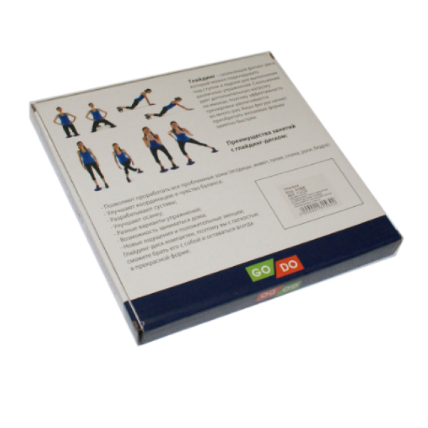 Описание: Одна сторона - идеально скользит по гладкой поверхности, оборотная сторона - протектор. Глайдинг - скользящий фитнес-диск, который можно подкладывать под ступни и ладони для выполнения различных упражнений. Скольжение дает дополнительную нагрузку на мышцы, поэтому эффективность тренировки увеличивается во много раз. Ваша фигура начнет приобретать желаемые формы заметно быстрее. Преимущества занятий с глайдинг-диском: