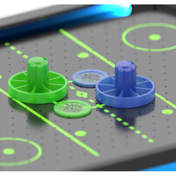 Особенность данного стола - синяя неоновая подсветка и звуковое сопровождение игры, что делает процесс более эмоциональным и увлекательным. Игровое поле размерами 39,5 х 29,5 см. сделано из полипропилена, покрытого ПВХ.