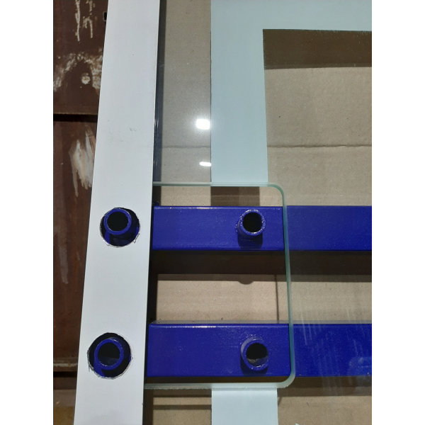 В баскетбольном щите используется цельное закаленное стекло толщиной 10 мм. Металлическая рама изготовлена из квадратного стального профиля 40х40 мм., имеет монтажные отверстия и "клыки" для крепления к ферме или к стойке а также отверстия для крепления баскетбольного кольца. Посадочное место под баскетбольное кольцо размерами 10 х 11 см.
