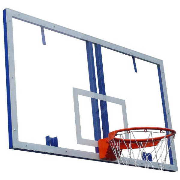 Баскетбольный щит выполнен в соответствии с требованиями FIBA для проведения тренировок и соревнований.рама окрашена порошковой краской. Разметка нанесена на стекло белой краской с обратной стороны.щит по периметрну окантован алюминиевым уголком белого цвета.в стекле сделан П-образный вырез для крепления кольца.