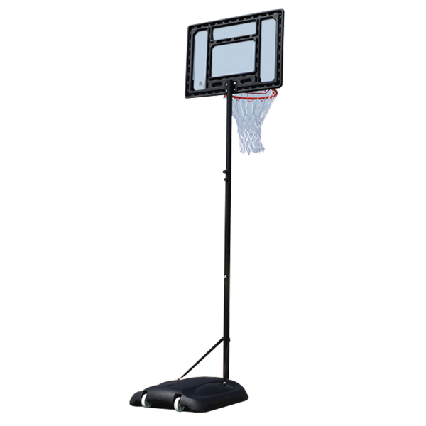 Описание: Детская мобильная баскетбольная стойка. В основание необходимо залить воду или засыпать песок. Телескопическая регулировка высоты от 165 до 220 см (по кольцу). Кольцо 38 см, оранжевое. Всепогодная нейлоновая сетка. Характеристики: