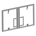 Прямоугольный щит стойки выполнен из высокопрочного поликарбоната, укрепленного рамой из мощного стального профиля. К щиту надёжно крепится стальное кольцо с вертикальной пружиной, которая обеспечивает плавный «отрыв» кольца при ударе. Кольцо укомплектовано нейлоновой сеткой, устойчивой к различным погодным явлениям.