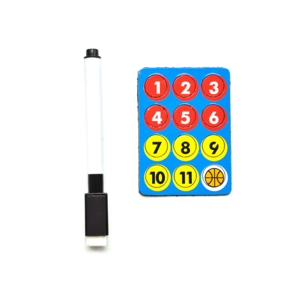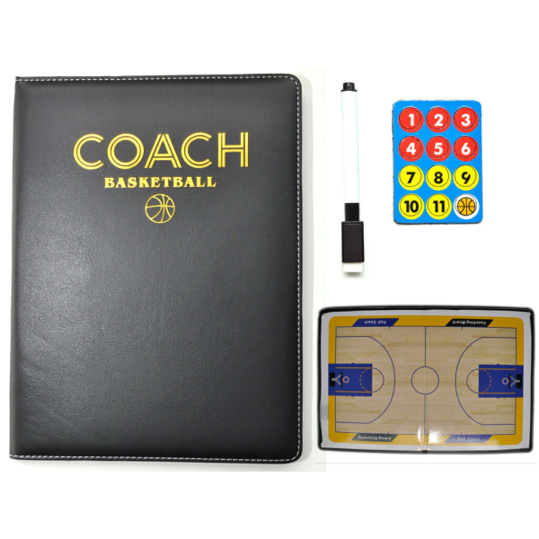 Папка тренерская "Баскетбол" с тактической доской оснащена магнитной основой предназначена для использования в учебно-тренировочном процессе тренерского состава. В комплекте фишки, которые крепятся на доску, маркер, который стирает надписи с доски без воды.Количество фишек на клейкой основе- 12 шт (нумерация с 1 до 11 и фишка - баскетбольный мяч).