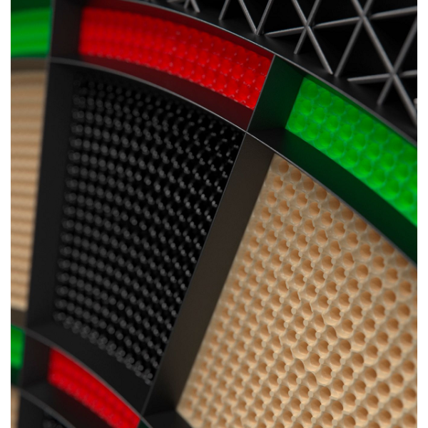 Мишень изготовлена из ABS пластика. В комплект изделия входят 3 дротика и 12 наконечников.На мишени предусмотрено 18 видов игр и 159 опций. Одновременно в дартс могут играть от 1 до 16 игроков. Звуковое сопровождение игры добавляет интереса и азарта. Характеристики: