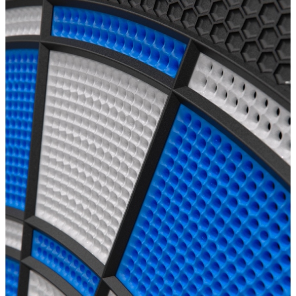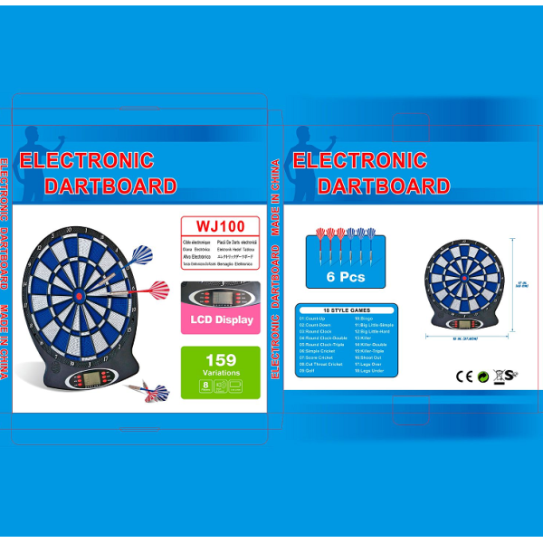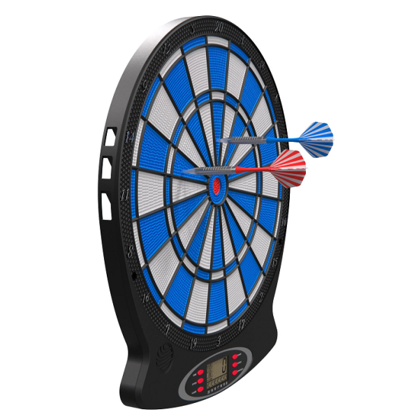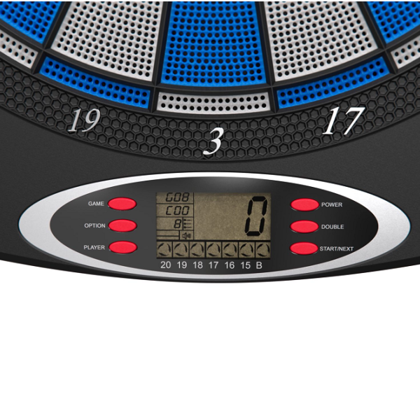 Изделие имеет монохромный ЖК-дисплей и включает в себя 18 различных игр и 159 опций. Одновременно в дартс могут играть от 1 до 8 игроков, а подсчет очков выполняется автоматически. Возможность звукового сопровождения игры сделает ее более активной и увлекательной. Для работы мишени необходимы 3 батарейки типа АА (1,5 В, батарейки в комплект не входят).