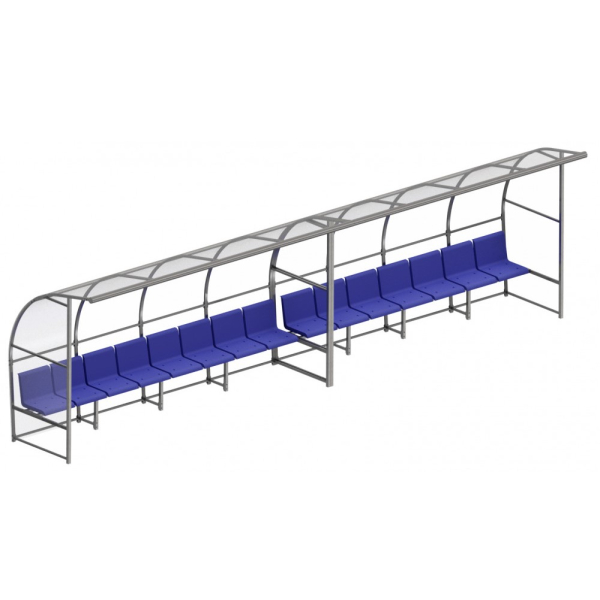 Скамейка для запасных игроков с навесом на 15 посадочных местНажмите, чтобы увеличить |