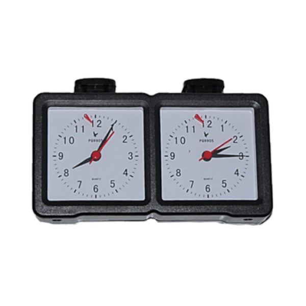 Описание: Шахматные часы используются для контроля времени во время игры.Часы включают в себя – два циферблата, две пластиковые кнопки для переключения часов. На каждом циферблате имеется флажок для фиксации окончания времени. С оборотной стороны находятся два поворотных механизма перевода стрелок для регулировки часовой и минутной стрелки. Характеристики: