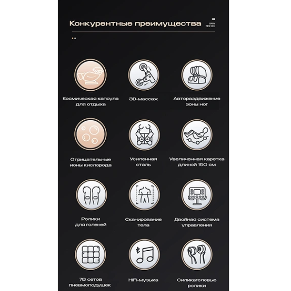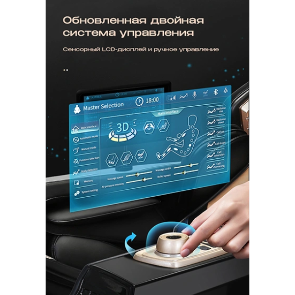Кресло поддерживает голосовое управление и Bluetooth для воспроизведения музыки: есть возможность наслаждаться любимыми треками во время массажа.