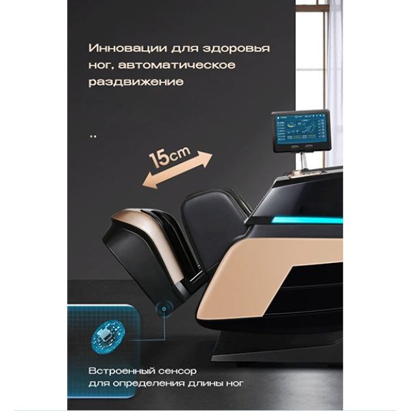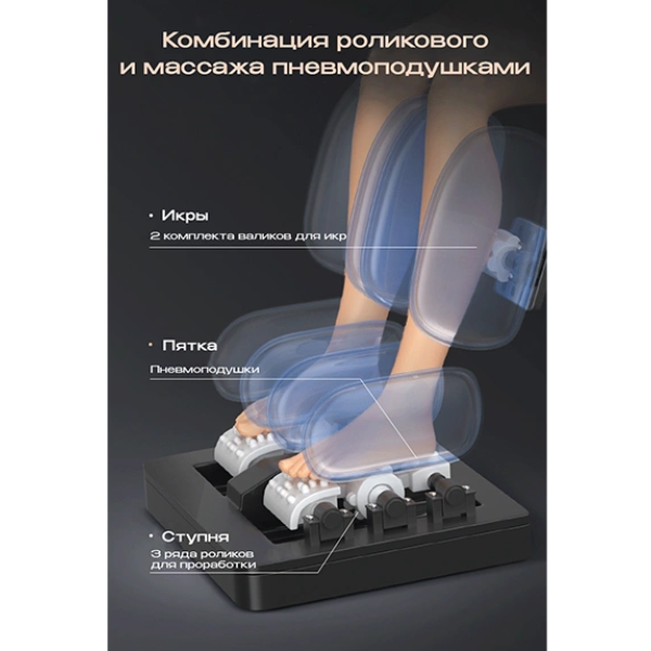 Регулировка интенсивности массажа позволяет адаптировать работу роликов и пневматических подушек под текущие потребности: от мягкого расслабления после напряжённого дня до интенсивной проработки мышц перед тренировкой.