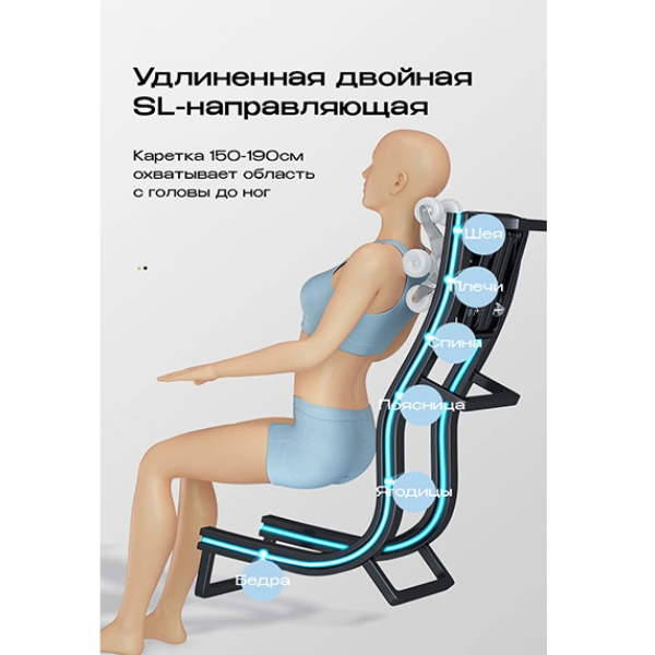 Зоны массажа: шея, плечи, спина, поясница, ягодицы, руки, кисти, бедра, голени, стопы;