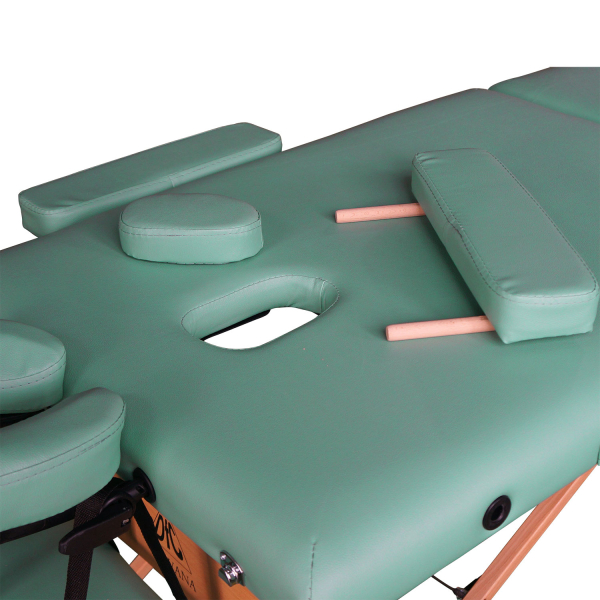 Складной 2-х секционный переносной массажный стол DFC NIRVANA Relax в зелёном цвете изготовлен из высококачественных компонентов и идеально подходит для домашней эксплуатации.