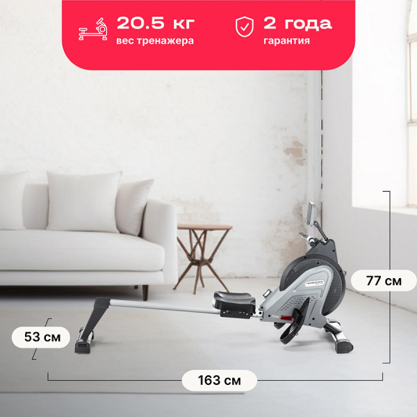 Описание: Svensson Body Labs ROW FORCE - это тренажёр, разработанный специально для домашнего использования, который позволит любому пользователю получить все преимущества гребного тренировочного комплекса без необходимости посещения спортзала. Максимальная нагрузка составляет 130 кг., что позволяет тренироваться пользователям разного уровня физической подготовки. Рама гребного тренажера прошла антикоррозийную обработку и покрыта двумя слоями краски, обеспечивая надёжность и долговечность тренажёра на многие годы использования. Система нагружения основана на электромагнитной технологии SpinMaster, позволяющая регулировать нагрузку на основе индивидуальной физической подготовки и тренировочных целей. Маховик тренажера имеет инерционный вес 9 кг., обеспечивая плавное и естественное движение во время гребли, что создает ощущение реального весла и максимально приближает к тренировкам на воде. Рукоять гребного тренажера имеет прямую форму и оплетку из резины, обеспечивая комфортный и надежный хват. Антискользящее сиденье повышенной комфортности и педали с регулируемыми ремешками обеспечивают удобство и безопасность во время тренировки. Характеристики: