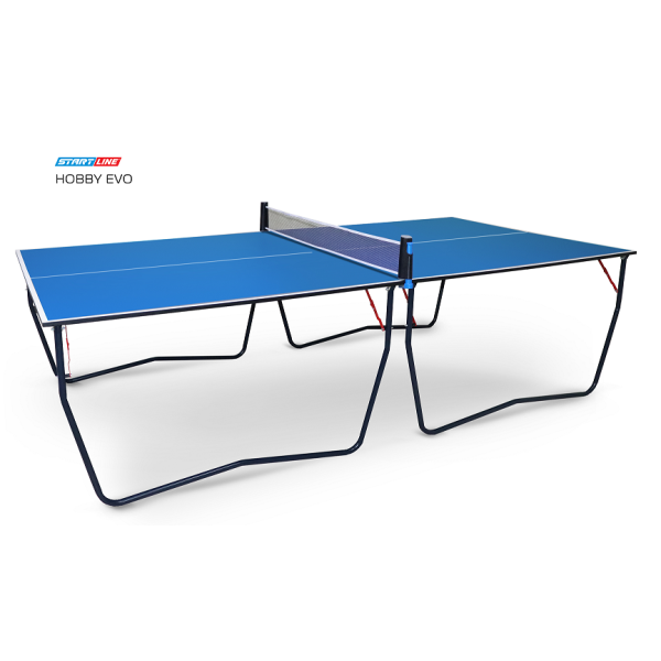Модель Evo относится к новому поколению легендарной линейки Hobby, которая заслуженно пользуется широкой популярностью среди любителей настольного тенниса. Hobby Evo blue — любительский теннисный стол для дома и офиса. Модель облегчённого конструктива и ультрасовременного дизайна. Ноги стола специальной формы, с характерным изгибом. Раскосы ярко-красного цвета с надежной фиксацией обеспечивают устойчивость конструкции в разложенном виде и во время игры. Модель легко устанавливается и очень компактна при хранении. Характеристики: