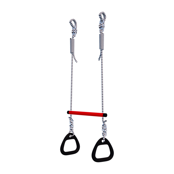 Описание: Спортивный снаряд ROMANA «Кольца с перекладиной» позволит усовершенствовать ваш дачный спортивный комплекс. Это два спортивно-игровых снаряда в одном, каждый ребенок сможет выбрать себе упражнение по вкусу. Кольца выполнены из прочного пластика и имеют эргономичную треугольную форму. Перекладина выполнена из дерева. Установка оборудования не составит труда. Также снаряд оснащен фиксаторами, позволяющими отрегулировать длину. Характеристики: