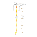 Благодаря удобным хомутам в лазе сочетаются надежность креплений, компактный размер и удобство передвижения на любую высоту. Так как установив его вначале, на удобную для Вашего малыша высоту, со временем можно поменять его высоту, угол поворота или разместить лаз на другой стороне ДСК. А разместив несколько таких лазов на стойке ДСК подряд - получится интересная лесенка.