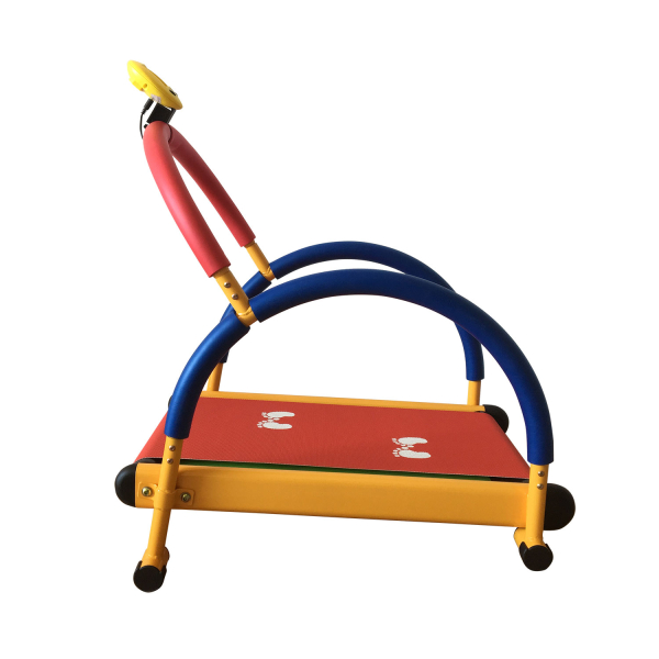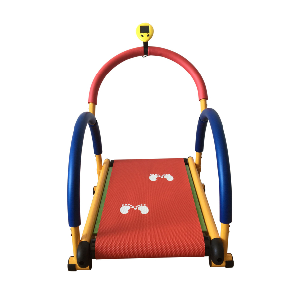 Безопасная детская беговая дорожка для домашнего спортзала, где ребенок самостоятельно инициирует движение бегового полотна. Полотно, находясь под наклоном, создаёт эффект «восхождения в горку».