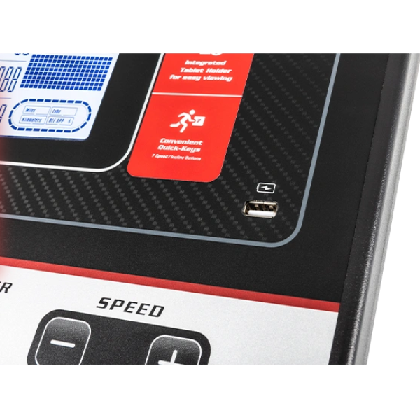 В обновленную модель F63 теперь встроен держатель для планшета, что позволяет удобно использовать ваши мобильные устройства для просмотра передач или выполнения упражнений, а также USB-порт для зарядки и аудиоколонки Bluetooth для беспрепятственного прослушивания музыки.