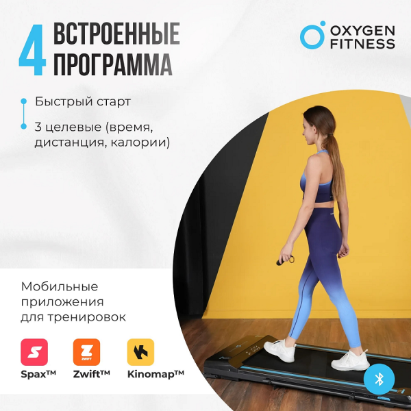 Описание: Беговая дорожка Oxygen FITNESS SELENI PLUS — это идеальное решение для тех, кто хочет поддерживать физическую активность, не выходя из дома. С двигателем в 1.5 л.с. (пиковая мощность 2.5 л.с.) и максимальной скоростью до 10 км/ч., она подходит как для лёгкой разминки, так и для более интенсивных тренировок. Удобное беговое полотно шириной 41 см. и длиной 115 см. обеспечивает комфортное пространство для занятий, что позволяет сосредоточиться на тренировках. Беговая дорожка оснащена LED-дисплеем с белой индикацией, который отображает важные параметры: время, скорость, дистанцию и количество сожженных калорий. Данная модель предлагает 4 различных программы тренировок, включая быстрый старт и 3 целевые программы (по времени, дистанции и калориям), что поможет пользователям достигать своих фитнес-целей более эффективно.