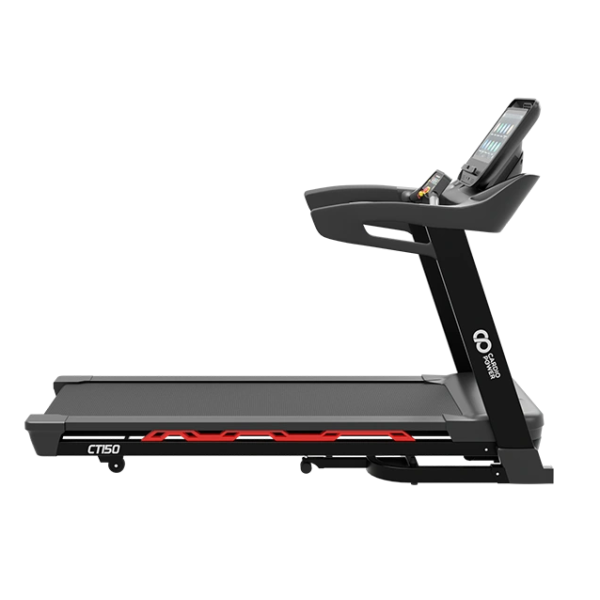 Профессиональная беговая дорожка CardioPower PRO CT150 предлагает просторное беговое полотно размером 55 х 155 см.- идеальное для комфортных тренировок пользователей разной комплекции. Она оснащена 18-уровневой электрической регулировкой угла наклона до 12.7 градусов, что делает тренировки разнообразными и эффективными. Механизм складывания обеспечивает удобное хранение (размер в сложенном виде 129 х 95 х 167 см.) Мощный двигатель переменного тока AC с пиковой мощностью 3,5 л.с. работает тихо и имеет защиту от перегрузки, достигая скорости до 20 км/ч. TFT-дисплей диагональю 15.6 дюймов отображает все параметры тренировки, а система управления с Touch screen упрощает настройку. Инновационная система контроля пульса с передачей сигнала по Bluetooth включает возможность использования наручного браслета CardioPower CC200 (опционально), обеспечивающего высокую точность измерений пульса. Также доступен классический нагрудный кардиопояс Bluetooth (опционально) в качестве альтернативы.