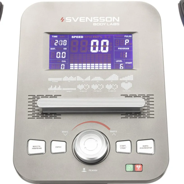 Описание: Эллиптический тренажер Svensson Body Labs TITAN - идеальный выбор для всех, кто стремится к здоровью и активному образу жизни! Высокопрочная рама тренажёра с антикоррозийной обработкой и электромагнитная система нагружения SpinMaster EMS с 16 уровнями интенсивности обеспечивают непревзойденное качество и комфорт во время тренировок. Трёхуровневая механическая регулировка угла наклона, дисковый шатун педального узла с увеличенным радиусом и удобные изогнутые подвижные поручни с мягкой оплеткой делают тренировки на SVENSSON BODY LABS TITAN максимально удобными и эффективными. Педали увеличенного размера с антискользящим покрытием обеспечивают безопасность и комфорт во время занятий.