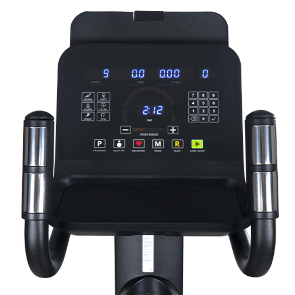 CardioPower X50 – переднеприводной эллиптический тренажер для тренировок в домашних условиях. Выполнен в футуристическом дизайне и обладает великолепной эргономикой. Наклонная конструкция рамы обеспечивает комфорт тренировки и правильную траекторию движения. Рама тренажера выполнена из усиленного стального профиля, что гарантирует высокую надежность и возможность использования людьми с массой тела до 150 кг. Маховик весом в 25 кг. обеспечивает плавное, комфортное движение без рывков и остановок, а шаг в 51 см. является оптимальным для эффективной тренировки мышц ног и ягодиц и подойдет пользователям ростом до 2 м. Консоль тренажера имеет удобное и интуитивно понятное управлением, возможность быстрого выбора программ, цифровую клавиатуру, а также быстрый доступ ко всем функциям тренажера. CardioPower X50 обеспечивает высокий уровень комфорта и безопасности тренировки.