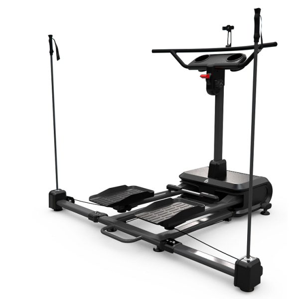 Для начала тренировки необходимо переместить тормозную ручку вверх, а по завершению - вниз. Педали также можно зафиксировать в одном положении, либо снять с предохранителя, чтобы они двигались свободно. Новичкам рекомендуется начать тренировки с неподвижными педалями, чтобы привыкнуть к технике и укрепить мышцы.Для удобства тренировок в консоли предусмотрены 2 кармана для бутылок, а также держатель для смартфона. Пользователь может легко хранить необходимые в процессе тренировок предметы в этих карманах, не отвлекаясь от занятий. SkiPro Black оснащен транспортировочными роликами и ручкой для лёгкого перемещения, что позволяет без труда перемещать его из одной комнаты в другую или просто убрать после тренировки. Характеристики: