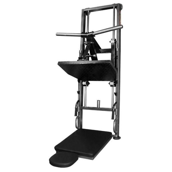 Данный станок предназначен для качественной проработки мышц бедер. Включает в работу весь мышечный массив нижней части тела. 16 подшипников качения обеспечивают максимально плавный ход. В качестве материала для направляющих используется углеродистая сталь. Благодаря широкой платформе (75 см), упражнения можно выполнять при разной постановке ступней. Оборудование ProfiGym очень компактное (в сложенном состоянии его размер всего 0,7 х 0,7 м), что достигается с помощью угла наклона направляющих тренажера 80 градусов относительно пола.