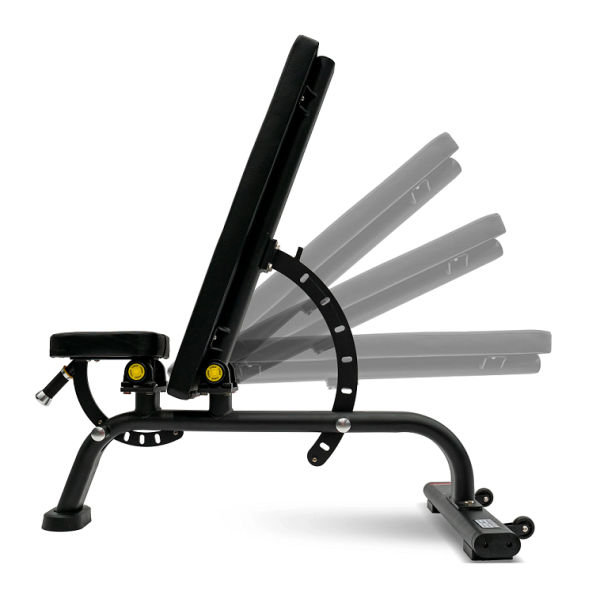 Скамья отличается усиленной рамой, износостойкой обивкой, 7 уровней положений спинки и 3 уровня положения сиденья для разнообразия позиционирования тренировок. Для облегчения транспортировки и передвижения скамьи по тренажёрному залу имеются специальные бесшумные ролики и рукоятка. Тренажер окрашивается порошковой термотвердой краской. Тренажёр оснащен амортизирующими подпятниками, не требующими крепления к полу. Характеристики: