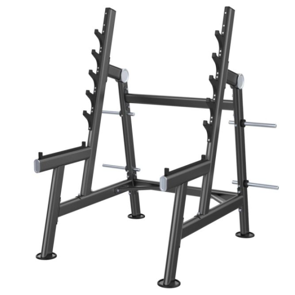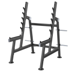 Описание: Тренажер предназначен для выполнения приседаний со штангой. Базовое упражнение направлено на развитие квадрицепсов, ягодичных мышц, мышц живота, бицепсов, больших грудных мышц. Благодаря разноуровневым опорам для штанги, можно быстро и безопасно стартовать и завершить подход. Между опорами стойки можно разместить скамью и выполнять жим штанги лежа или под углом. Характеристики: