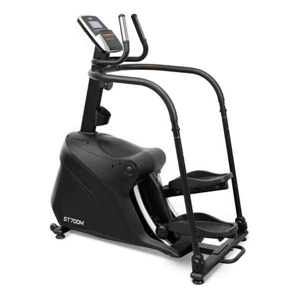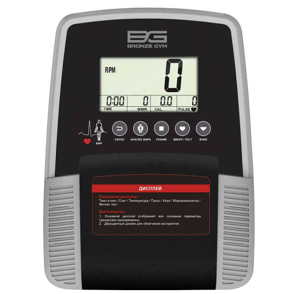 Описание: BRONZE GYM ST700M – это профессиональный степпер, способный выдерживать максимальные нагрузки пользователей в режиме нон-стоп. В основе надежной конструкции - высокопрочная рама с двухслойной покраской.Тренажёр создан для занятий с низкой ударной нагрузкой на суставы и позвоночник. За счёт своей конструкции и отлаженных биомеханических свойств достигается более мягкое воздействие на проблемные участки. Колени не перегружаются и акцент сосредотачивается на самих мышцах. Степпер оснащен магнитной системой нагружения. Маховик весом 15 кг., позволяет сделать ход плавным и разнообразить интенсивность тренировок. Для удобства, на оборудовании установлены прорезиненные педали увеличенного размера, которые покрыты антискользящим материалом. Горизонтальные и вертикальные поручни позволяют держать руки в разных положениях и обеспечивают устойчивость пользователя при выполнении упражнений, а также при подходах к спортивному снаряду. Тренировочный компьютер представлен многофункциональным LCD-дисплеем, отображающий 5 параметров одновременно. На экран компьютера выводятся все основные данные– время, счет, дистанция, пульс, темп/мин, фитнес тест, жироанализатор, метаболические индексы (BMI, BMR), температура в помещении.. К числу дополнительных преимуществ модели относится специальный держатель для мобильных устройств, а также держатель для бутылки с водой.