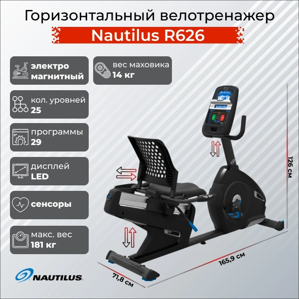 Горизонтальный велотренажер Nautilus R626Нажмите, чтобы увеличить |