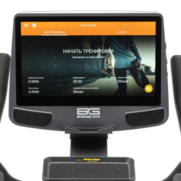 Одной из ярких особенностей тренажера являются педали с фиксаторами. Они снабжены специальными ремешками, которые надежно фиксируют стопу и предотвращают ее скольжение, даже при самых интенсивных тренировках. Это обеспечивает не только безопасность, но и максимальную эффективность тренировочного процесса. Беспроводная зарядка для мобильных устройств позволяет заряжать смартфон или планшет прямо во время тренировки, обеспечивая непрерывность занятий. Подставка под бутылку и транспортировочные ролики с компенсаторами неровностей пола добавляют дополнительные удобства и делают использование тренажёра максимально комфортным.