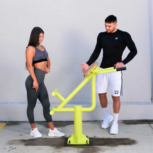 Описание: Уличный тренажер «Гиперэкстензия» предназначен для развития ягодичных мышц, мышц бедра и поясницы и оборудован для занятий на открытом воздухе. Угол наклона скамьи составляет 45 градусов.