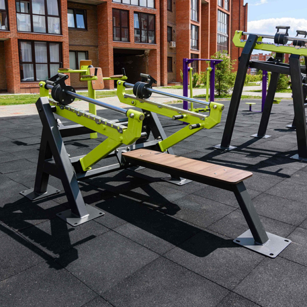 Уличный тренажер «Жим лежа» предназначен для функциональных тренировок на открытом воздухе. Жим лёжа – это базовое многосуставное упражнение, которое наилучшим образом подходит для развития силы и увеличения массы мышечных групп верха тела. Основная нагрузка приходится на большую грудную мышцу, дополнительную получают трицепсы и дельтоиды.