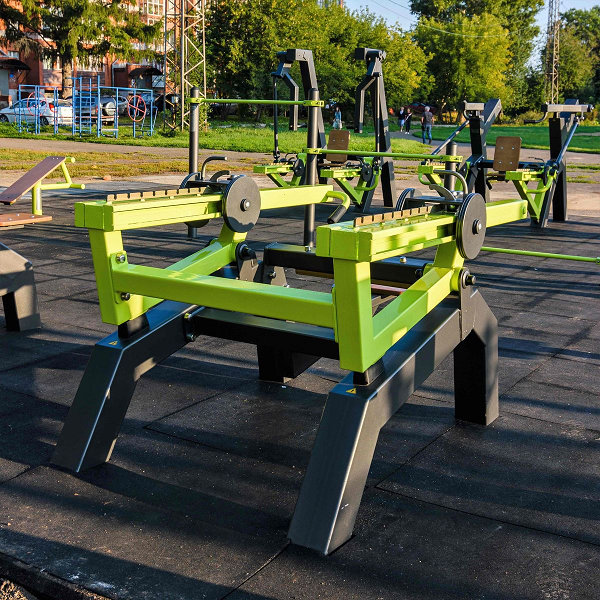 • Подвижные рычаги тренажера оснащены передвижными блоками из листового материала толщиной 8 мм., на роликах д=75, весом 20 кг на один подвижный рычаг.