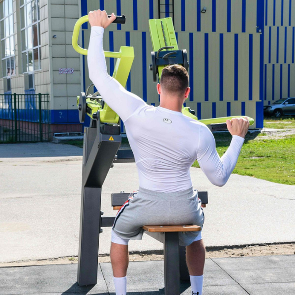 Уличный тренажер «Вертикальная тяга» предназначен для функциональных тренировок на открытом воздухе.