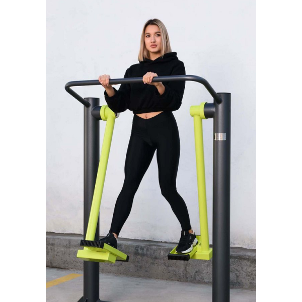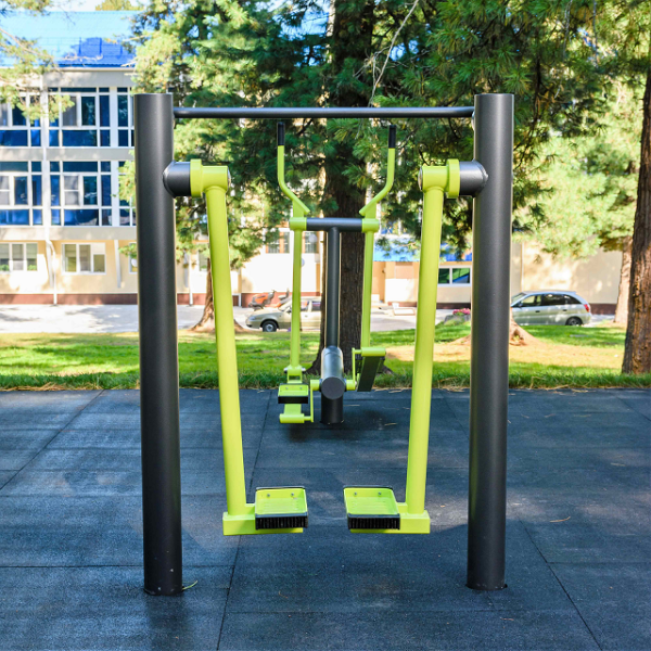 Конструктивно тренажёр состоит из двух параллельных столбов, расположенных параллельно друг другу, и связанных между собой стальной ручкой- упором. Через узлы вращения к столбам подвешены рычаги с ногоступами. За счёт применения специально разработанных узлов с ограничением вращения, в конструкции отсутствуют открытые отбойные элементы, что ведёт к уменьшению травмоопасности и исключает любое соударение частей тренажёра. Угол отклонения рычага 60˚ в каждую сторону.
